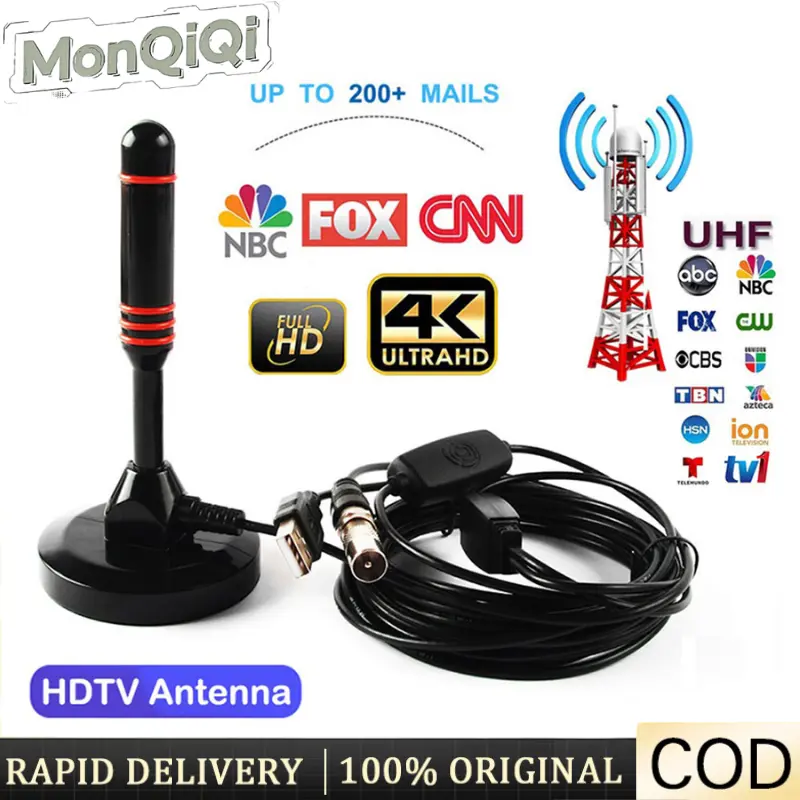 Televisyen Dalaman HDTV, dvb-t2 penyahkod, Antena Dalaman, Antena TV, Resolusi 1080PDigital, dengan penguat dan Kabel 5m, [COD] Hitam